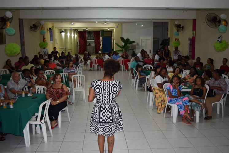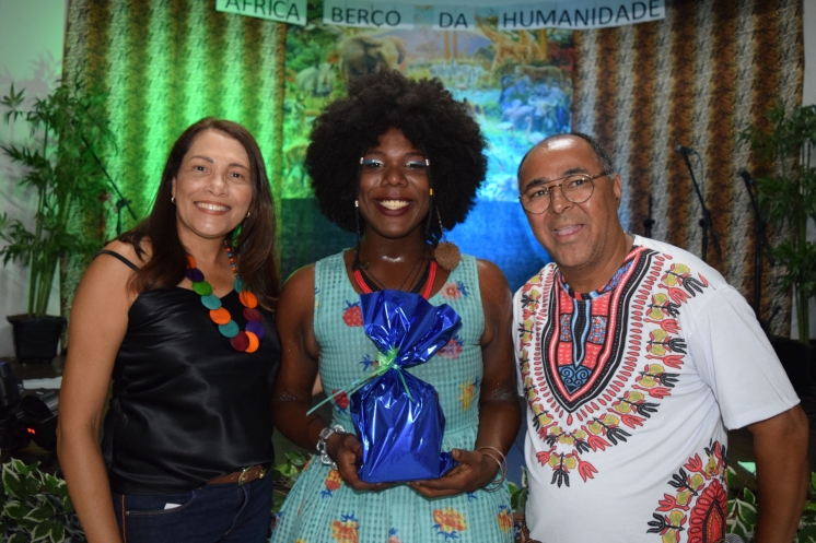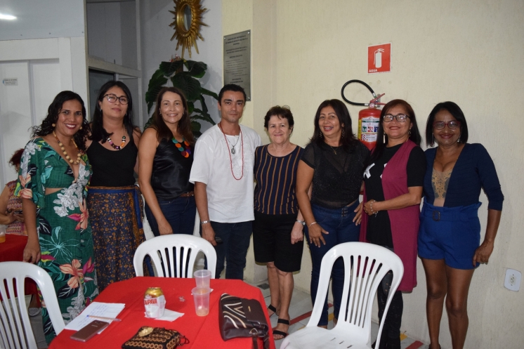 A Profª. Ma. Sara Rogéria, doutoranda em cultura e literatura com foco em representatividade negra, reforçou a importância de fazermos da educação um instrumento de luta antirracista e representativo. Durante a sua fala, revelou, de forma emocionante e agradecida, que a secretária de Aposentados, Profª Joelma Dias, foi uma das professoras responsáveis por sua formação e identificação com a negritude.