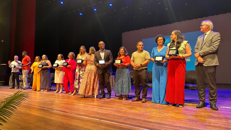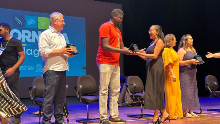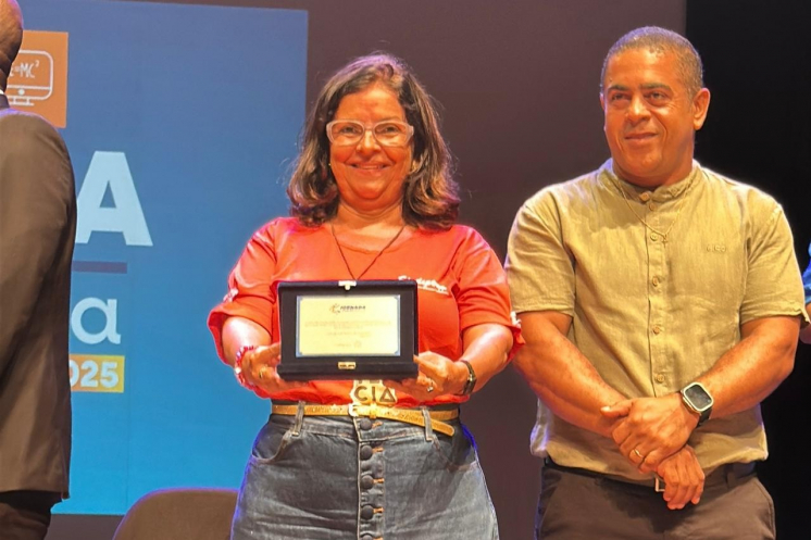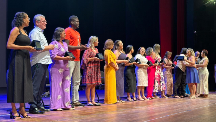 Ainda no evento, foram entregues placas em homenagem a professoras e professores que se destacaram pelos bons resultados de aprendizagem nas práticas pedagógicas no ano de 2024. Entre as homenageadas estava a professora Sandra Beiju, vice-presidente do Sindipema e docente da EMEI Áurea Melo Zamor.