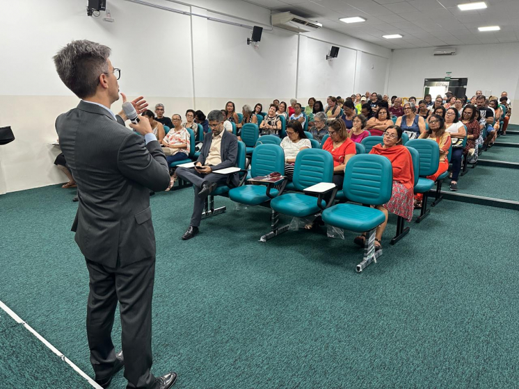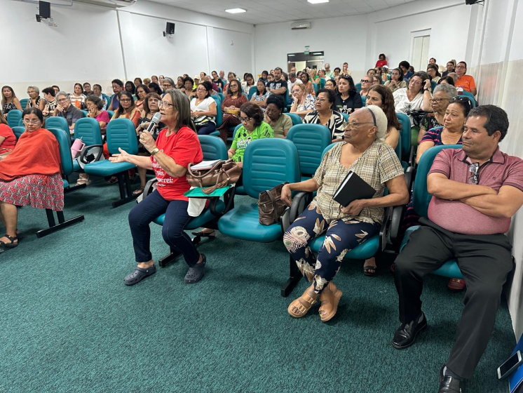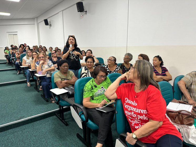 O Sindipema realizou, na tarde da quinta-feira (23), uma grande plenária com professoras e professores aposentados, no auditório Prof. Diomedes Santos da Silva, para atualizá-los sobre o andamento das ações judiciais coletivas movidas pelo sindicato, a da Gratificação Especial de Atividade (GEA) e os precatórios dos 20%.