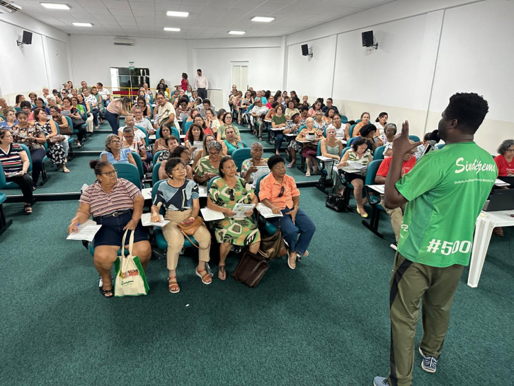 Professoras e professores aposentados da rede pública municipal de ensino participaram, na tarde desta quinta-feira (05), na sede do Sindipema, de uma plenária para dirimir todas as dúvidas e rebater informações falsas sobre o processo de negociação salarial de 2025 e o reajuste aplicado em 2026.