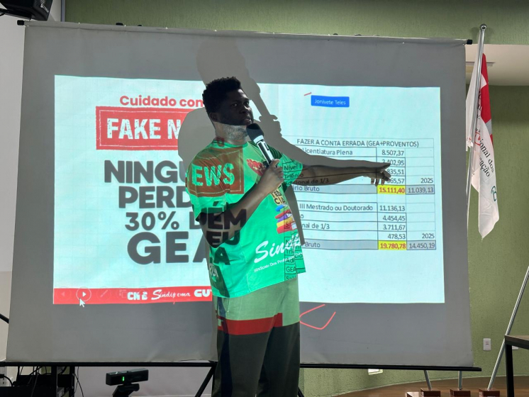 Ainda sobre a GEA, Obanshe Severo apresentou à plenária dados concretos, demonstrando que o reajuste de 2026 é superior à aplicação do percentual de reajuste do piso no vencimento e na GEA de 2025.