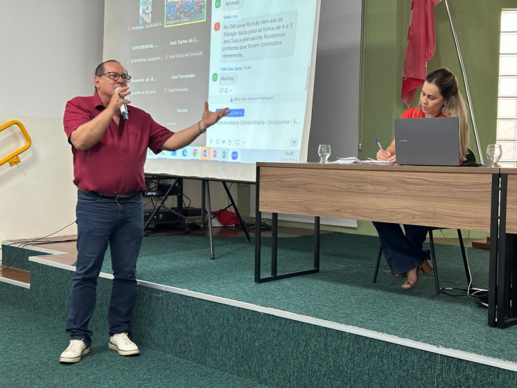 Nos informes à categoria, o presidente do Sindipema, professor Obanshe Severo, que conduziu a assembleia junto com a 1ª secretária do sindicato, a professora Patrícia Seixas e o Secretário de Aposentados/as e Assuntos Previdenciários, o professor Otalício Lima, tratou da eleição para o Conselho de Representantes de Base, marcada para o próximo dia 26 de março; destacou que as licenças especiais ainda estão represadas, sendo liberadas para o/a professor/a que não precisa de substituição; destacou que encaminhou ofício à Semed solicitando informações sobre a constante falta de material de limpeza nas escolas, bem como sobre o fechamento de turmas da Educação de Jovens e Adultos na rede.