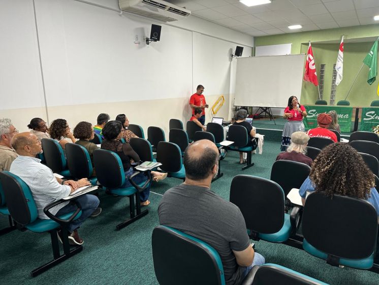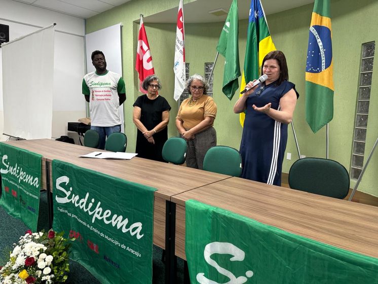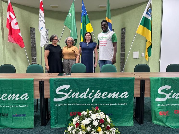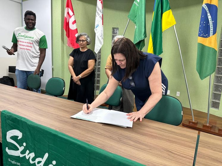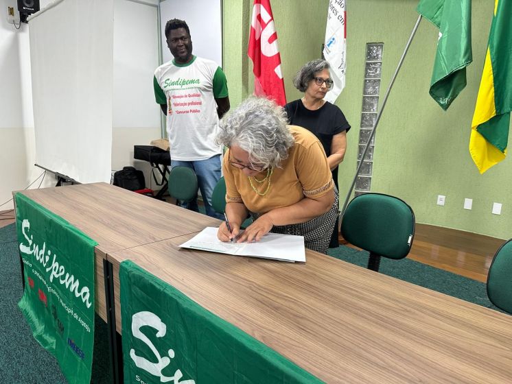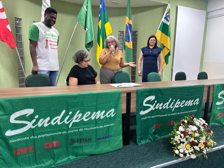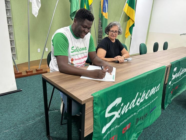 Após a leitura do termo de posse, o documento foi assinado pelo presidente do Sindipema, Obanshe Severo, e pela professora Gercilene Rodrigues de Lima Campos, representando as/os demais titulares, e a professora Marluce Pereira Ferreira, representando as/os demais suplentes.